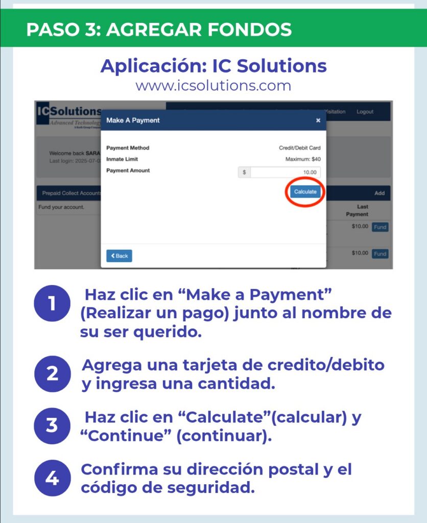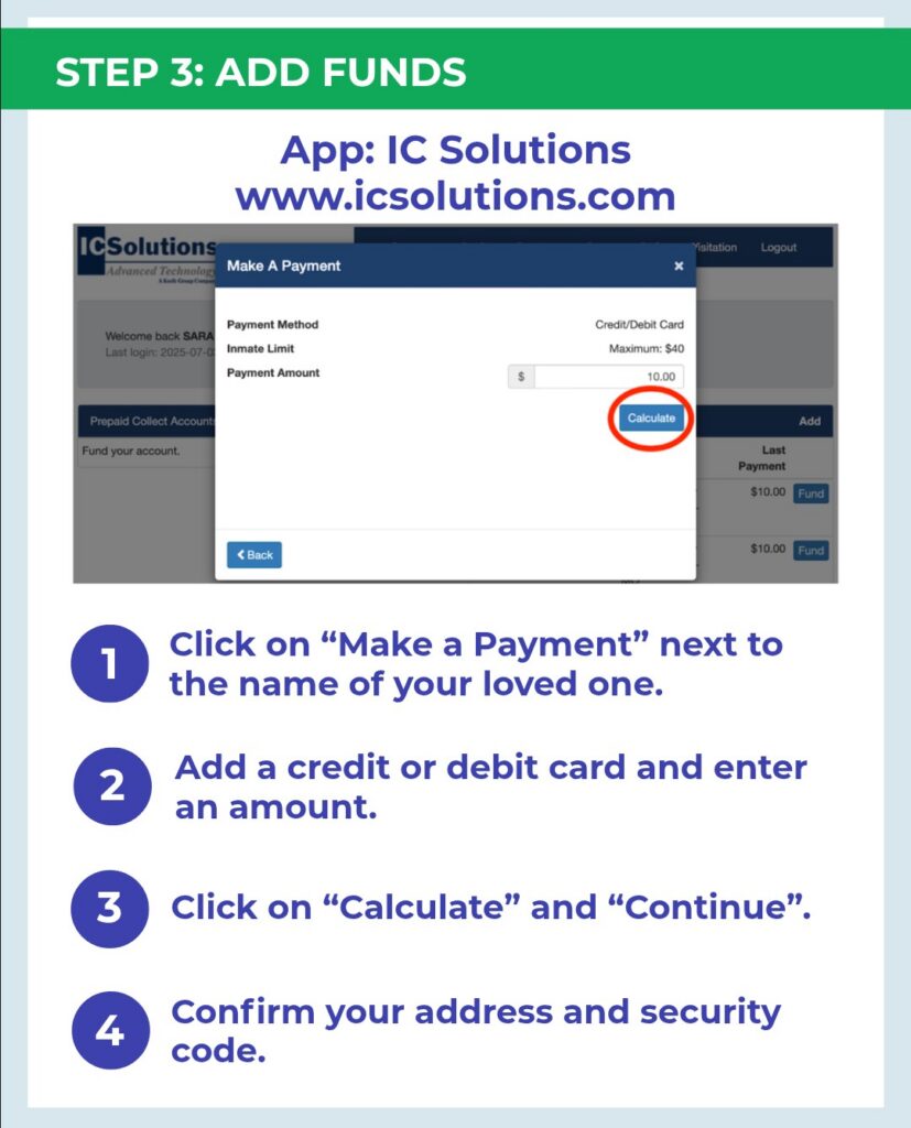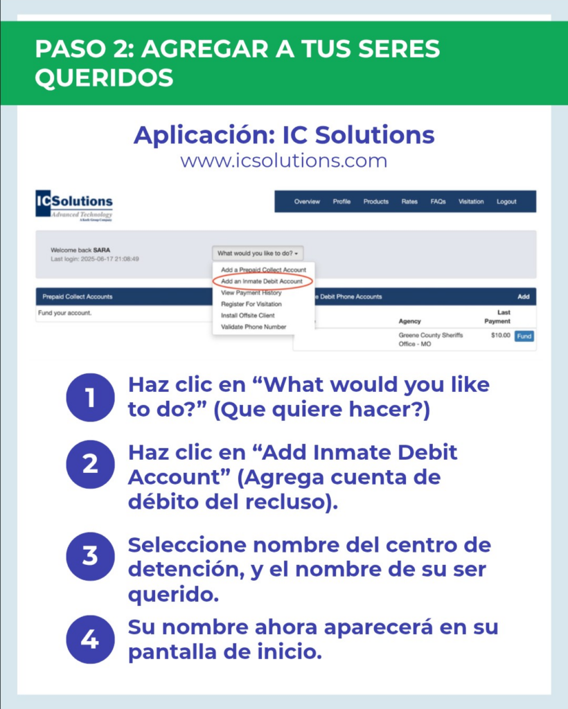 - Selecciona “Add Inmate Debit Account”.