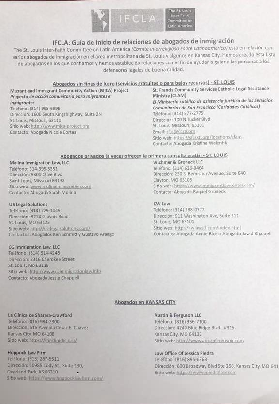 Varias organizaciones de inmigración de St. Louis han proporcionado a STLIRC esta lista: